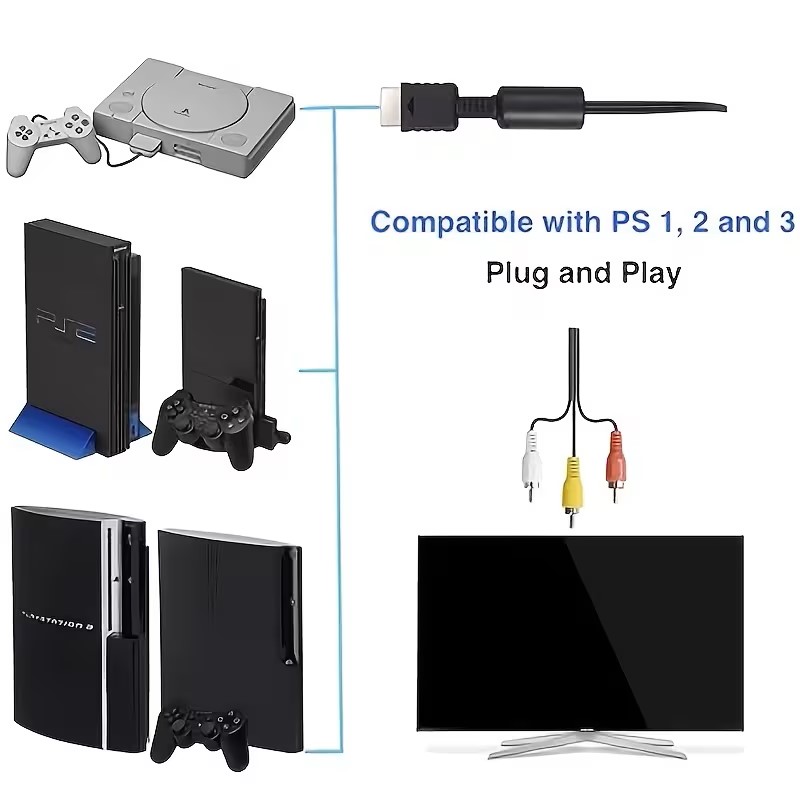 Câble Audio et Vidéo AV Compatible avec les Consoles PS1/PS2/PS3/PS3 Slim Câble RCA