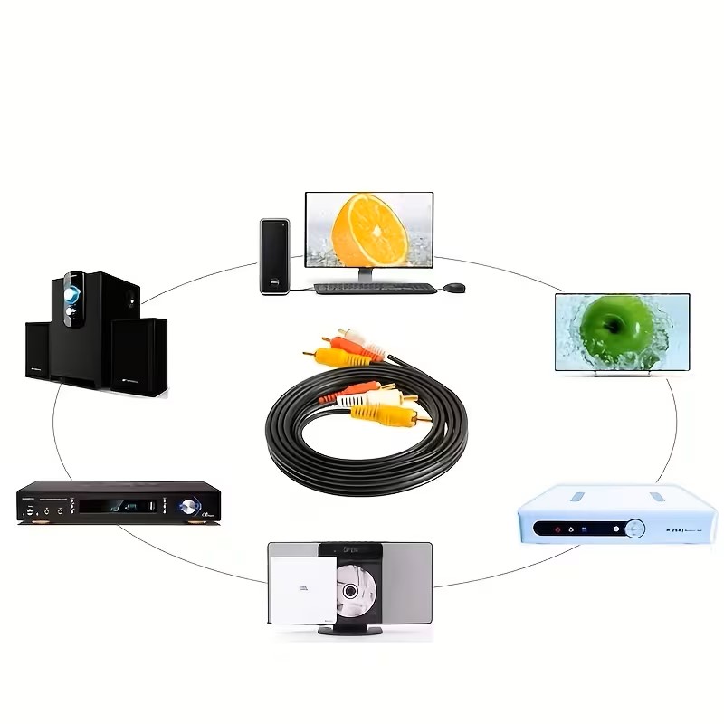 Câble audio et vidéo composite mâle-à-mâle 3 RCA vers 3 RCA de haute qualité en cuivre sans oxygène pour DVD et TV, câble RCA audio vidéo