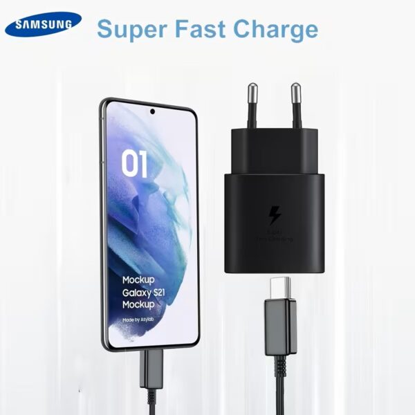 Chargeur Super Rapide Samsung 25W PD3.0 Prise EU – Adaptateur Secteur Version Globale Originale avec Faible Consommation en Veille, Universel 100-240V pour Voyage, Affaires, Bureau (Câble USB Non Inclus)