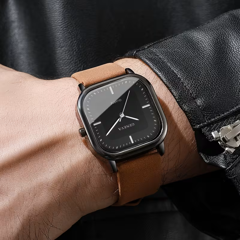Montre à quartz à affichage carré, élégante et minimaliste pour hommes, idéale pour un look business casual tendance (1pc/Set), boîte de montre non incluse